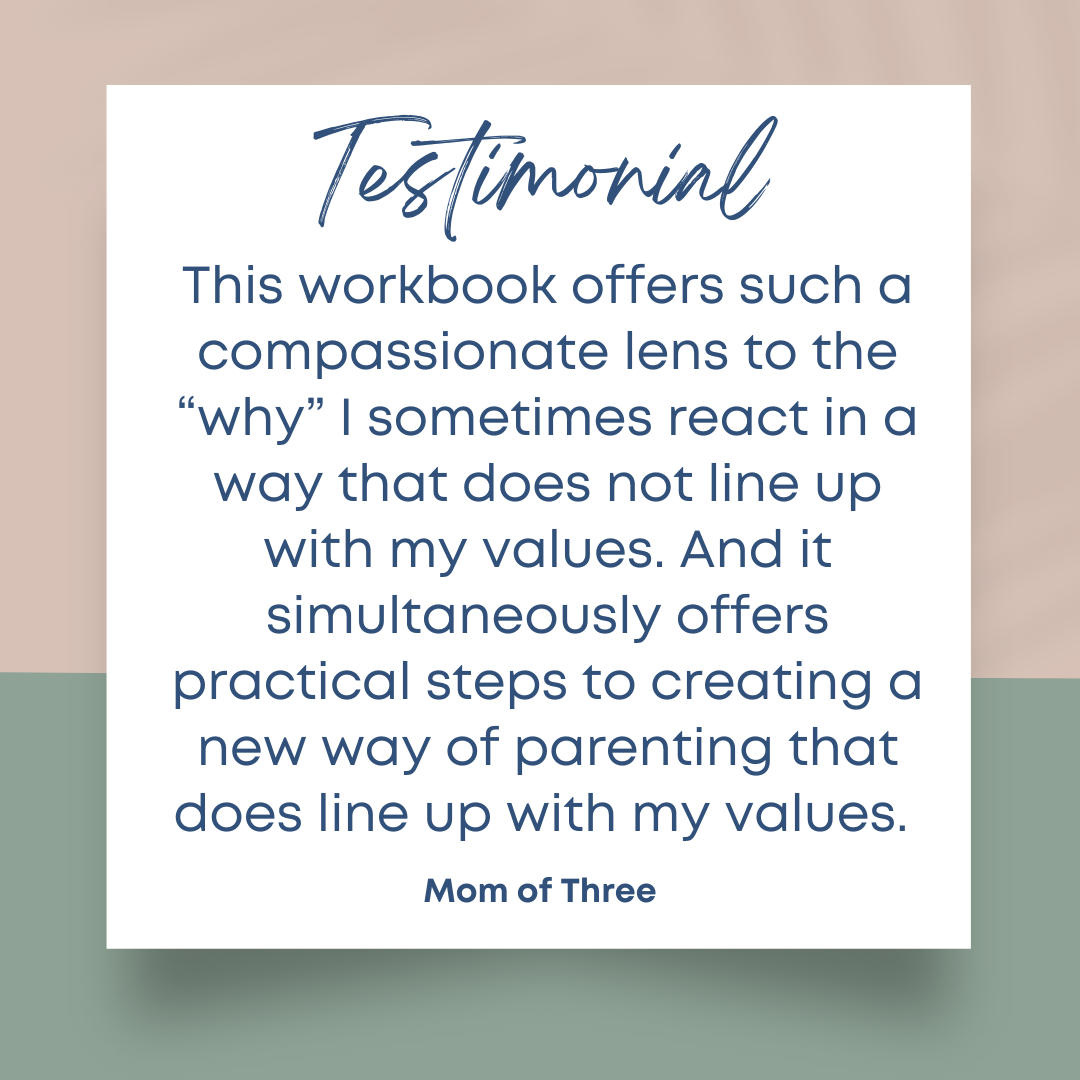 "This workbook is unlike anything I have seen on the market in the parenting world. While I have heard about "reparenting" and "self compassion" before, this workbook takes you through direct prompts to really think through specific scenarios that may get in the way of how you want to parent, while also leading you on to the next steps in your parenting journey in an easily digestible way."